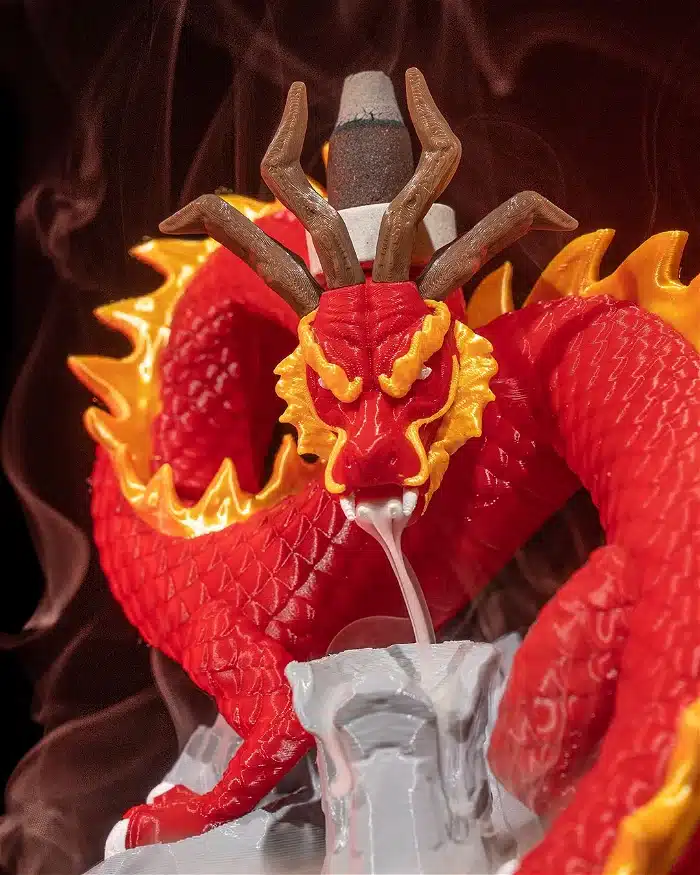 En detaljert backflow-røkelsesbrenner med dragetema og dramatisk røykeffekt. Designet for backflow-røkelse som gir en nedadgående, flytende røyk. Leveres med keramisk underlag. Produsert i multifarget utførelse. Produsert i Norge i miljøvennlig materiale. Farger kan variere. All bruk skjer på eget ansvar.