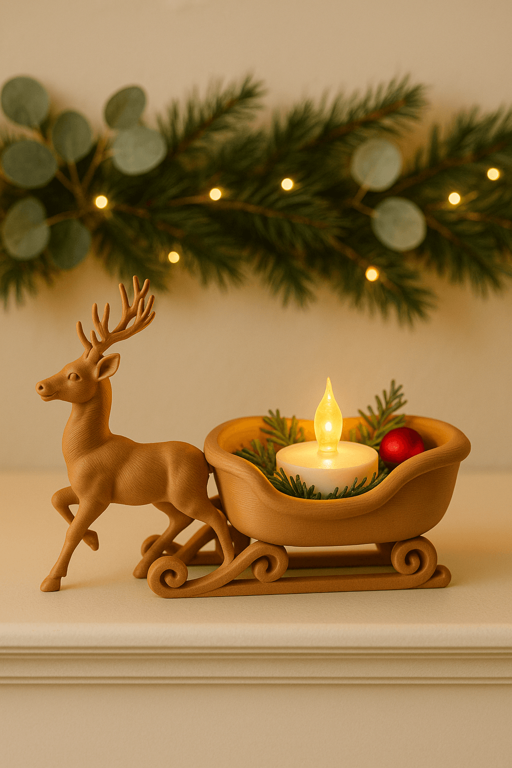 Reindeer & Sleigh LED Tea Light Holder – 3D Printed Holiday Decor, Cozy Christmas Mantle Accent