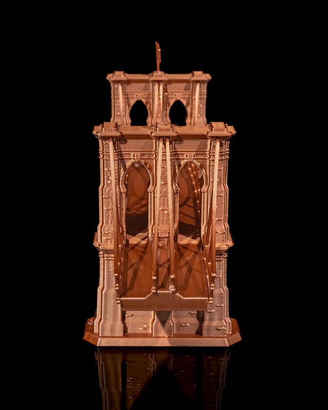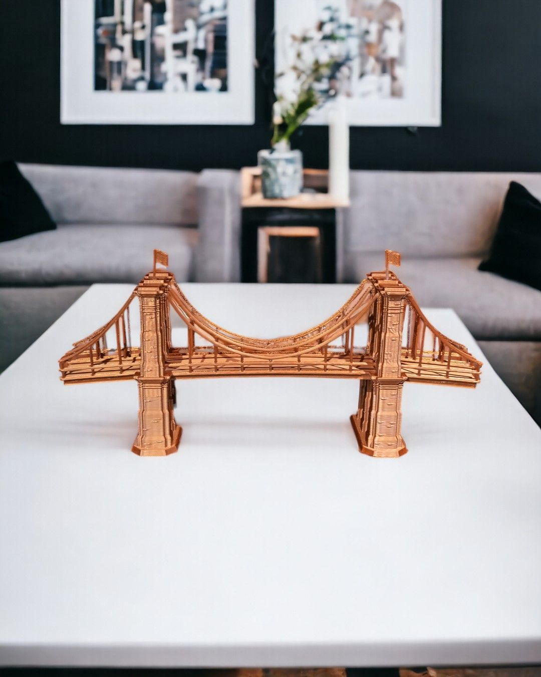 En detaljert modell av Brooklyn Bridge som fanger den ikoniske broens skjønnhet og ingeniørkunst.
