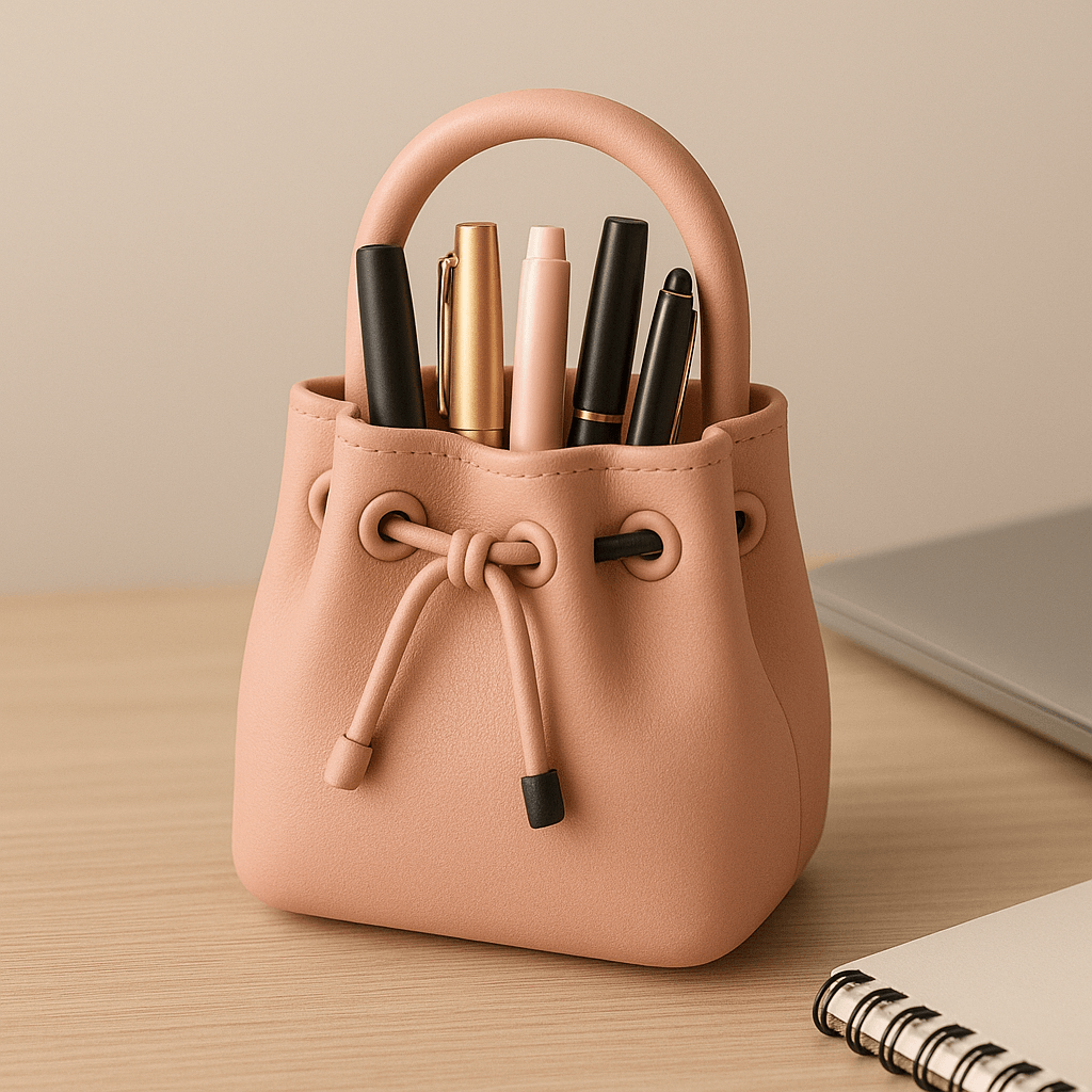 Sculptural Pink Drawstring Holder – Makeup Brush & Pen Organizer