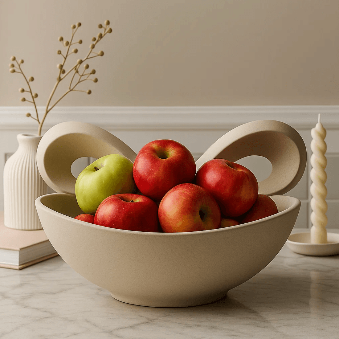 Sløyfehåndtaksskålen – En funksjonell og dekorativ form med integrert detalj. Skaper et gjennomført og elegant preg.