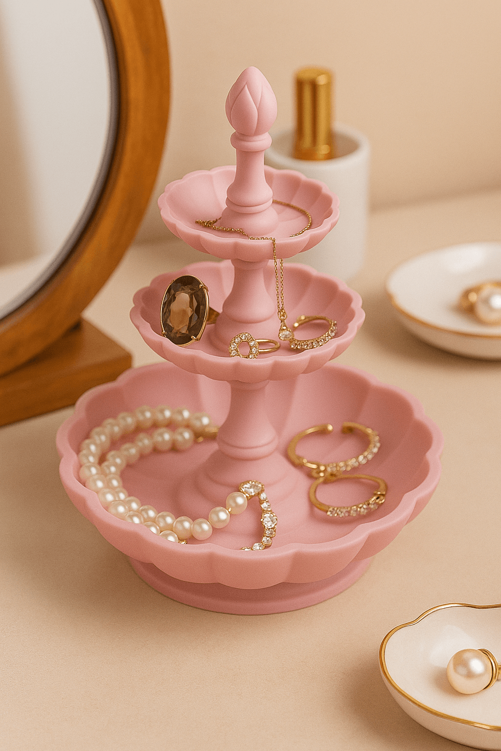 Trestegsfatet – En nivåinndelt form med tydelig struktur og orden. Gir et ryddig og grafisk uttrykk i ønsket fargetone.