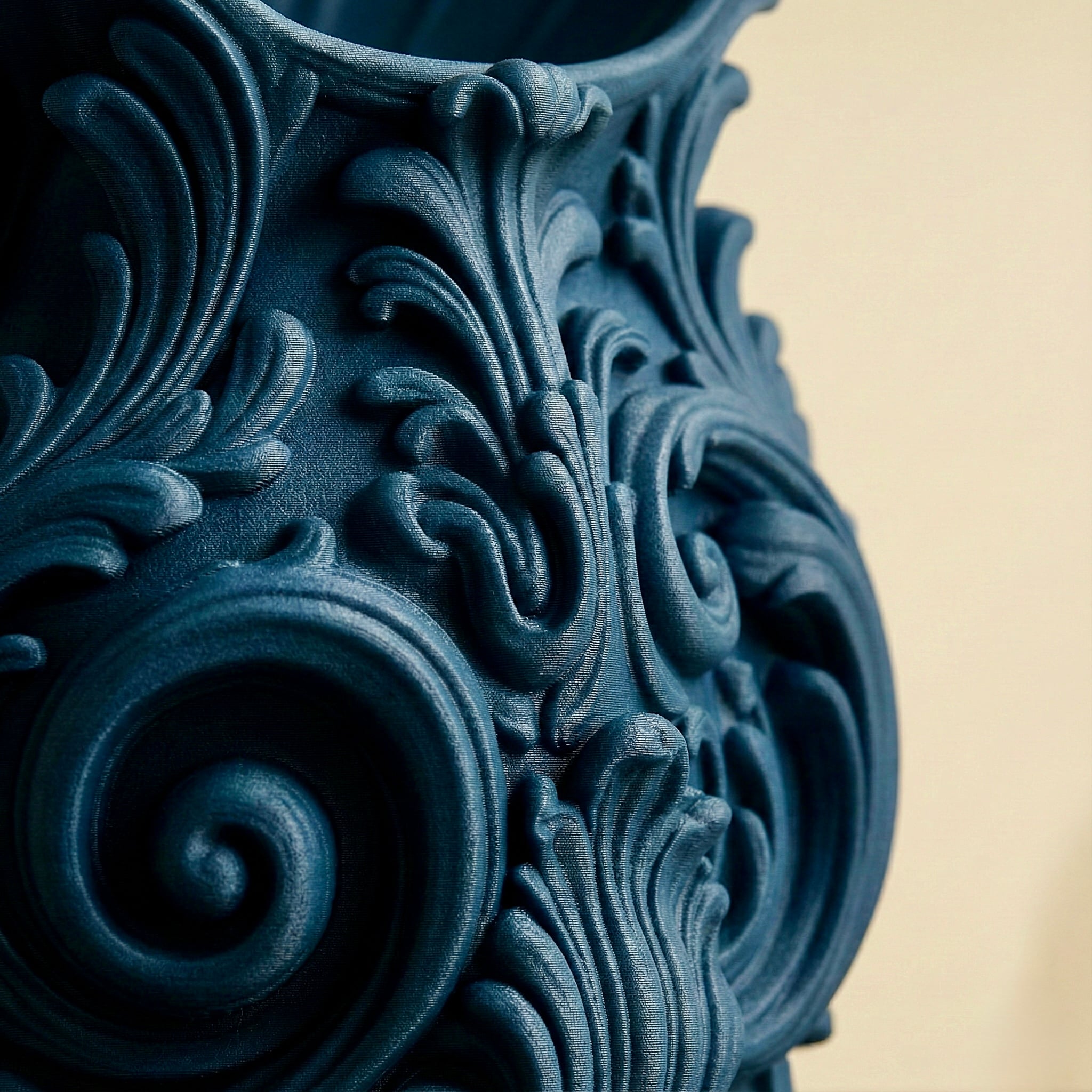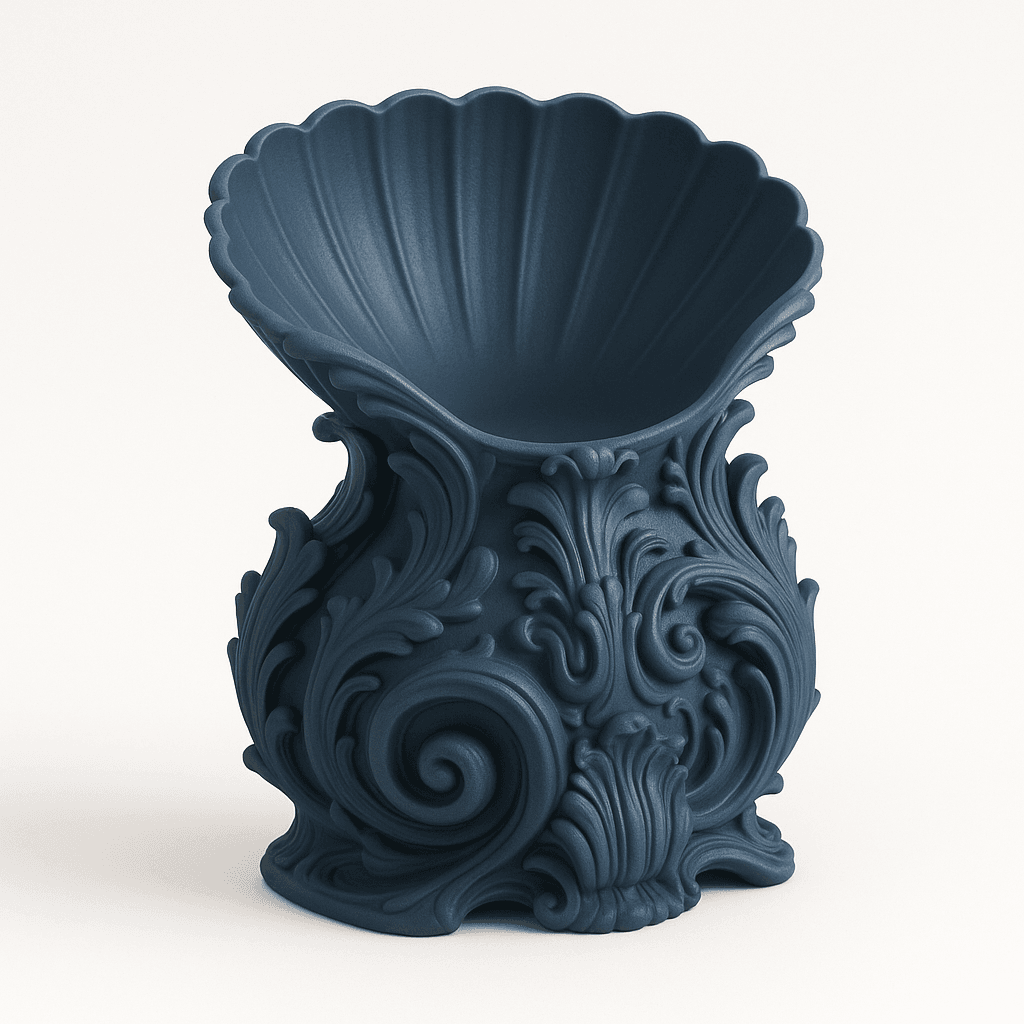 Barokkrullvasen – En fyldig vase med rullende former og tydelig historisk inspirasjon. Skaper et rikt og sofistikert uttrykk i rommet.