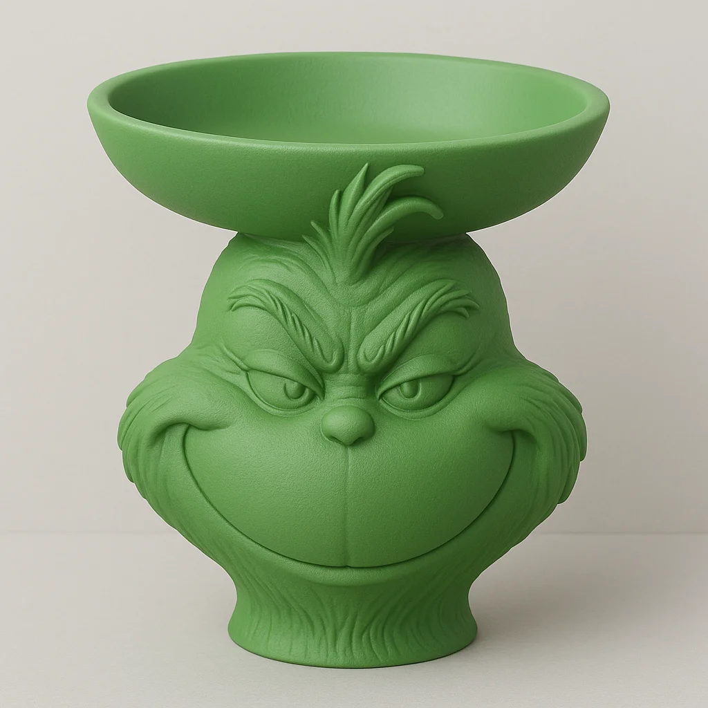 Grinch Head Catch-All Bowl – 3D Printed Holiday Entryway Tray for Keys, Candy & Ornaments