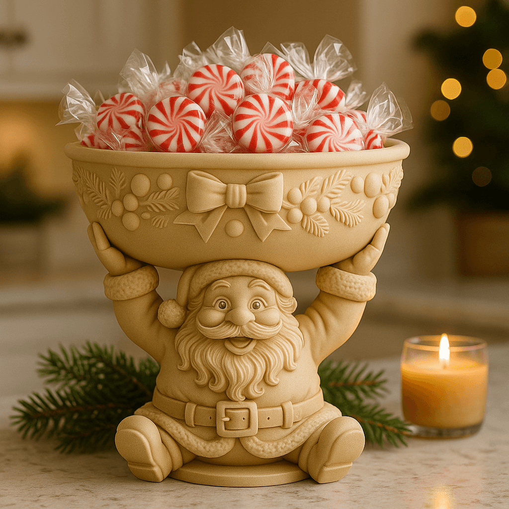 Santa Claus Holiday Candy Bowl – 3D Printed Decorative Christmas Catch-All Dish (Peppermints, Treats