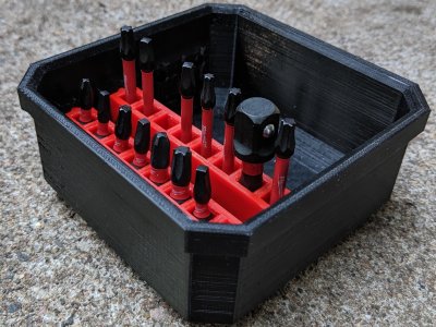 Ett veggfeste som består av flere deler som har 4 rom for oppbevaring av 125mm slipeskiver